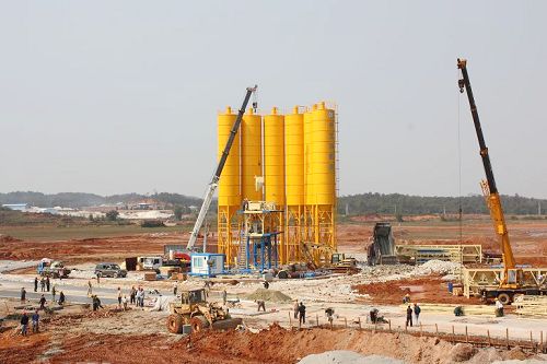 南海制梁場攪拌站兩座攪拌機主機吊裝完成