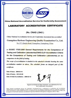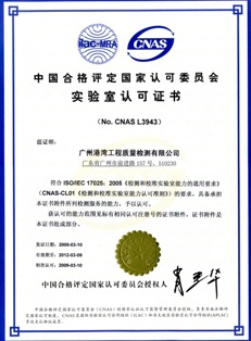 獲得CNAS的認可,即表明了廣州港灣工程質(zhì)量檢測有限公司具備了按ISO / IEC 17025 開展檢測服務(wù)的能力,其在批準(zhǔn)的業(yè)務(wù)范圍內(nèi)出具的檢測報告獲得了50多個國際上互認的實驗室認可機構(gòu)的承認,即從2009年3月10日起,在出具的工程試驗檢測報告上可使用CNAS認可標(biāo)識和ILAC-MRA/CNAS國際互認聯(lián)合標(biāo)識。