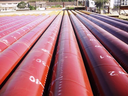 該工程鋼管樁長期受海水浸泡,海水中的氯離子對鋼結(jié)構(gòu)腐蝕嚴重,為確保碼頭的長期耐久性能,研究院建材所采用了廣州四航材料科技有限公司的科研技術(shù)成果--海工型SHJ系列環(huán)氧重防腐涂料,使鋼管樁具備優(yōu)異的防腐蝕性能、耐候性能及裝飾性能。