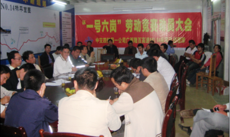 5月1日,一公司隆百項目部舉行"一號六崗"勞動競賽動員大會,全面啟動該項目部勞動競賽活動。