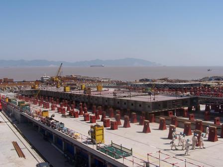 5月9日,舟山中遠(yuǎn)一號船臺鋼套箱的成功下沉到位,標(biāo)志著船臺工程水下段現(xiàn)澆全面展開。