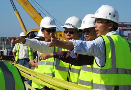 5月11日,中國(guó)駐埃及大使館經(jīng)濟(jì)商務(wù)參贊處曹甲昌公參一行蒞臨一公司塞得東港項(xiàng)目部視察指導(dǎo)工作。