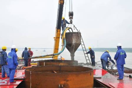 貴廣三項目經(jīng)理部克服了天氣惡劣、道路不暢等不利因素,順利完成鋼圍堰入水后最重要的一道工序,為安全渡汛和下一步主墩樁基施工奠定了基礎(chǔ)。