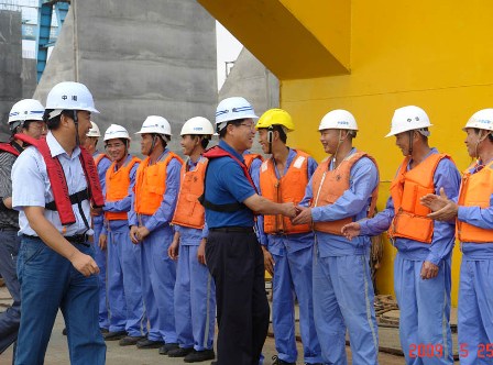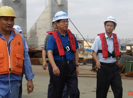 5月25日,中交股份副總裁陳玉勝一行在中港駐安哥拉辦事處副經(jīng)理錢啟瑩的陪同下,到四航局羅安達(dá)項目部視察。