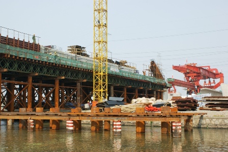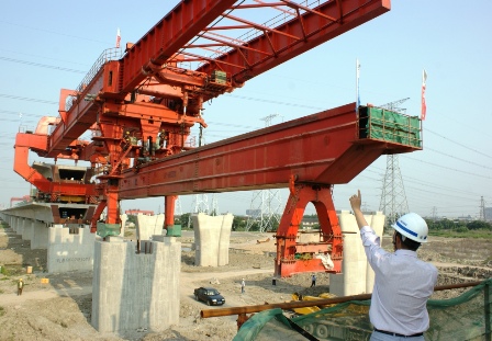 此階段架橋過程中,京滬高鐵上海嘉定制梁場(chǎng)克服種種困難,通過改進(jìn)工藝,加強(qiáng)管理,大幅度提高了箱梁架設(shè)工效,架梁過程中曾創(chuàng)造單班作業(yè)歷時(shí)13個(gè)小時(shí)架設(shè)4孔900噸箱梁的佳績(jī),為下步架梁工作順利進(jìn)行打下了良好基礎(chǔ)。