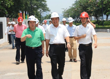 6月1日,四航局董事長(zhǎng)、黨委書記梁卓仁,廣州打撈局局長(zhǎng)陳北先、副局長(zhǎng)鄺鏡明、何偉章在四航局總經(jīng)理助理方嘉煊、二公司總經(jīng)理李惠明、黨委書記萬(wàn)軍杰的陪同下,到廣州市洲頭咀隧道工程二標(biāo)項(xiàng)目視察。
