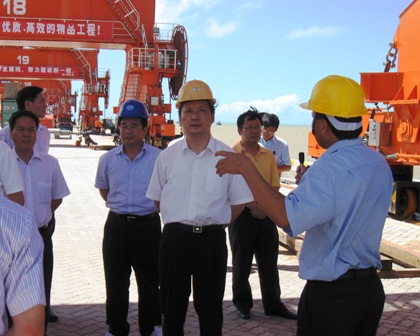 在碼頭施工現(xiàn)場(chǎng),李金早認(rèn)真聽(tīng)取了工程技術(shù)人員對(duì)當(dāng)前的安全生產(chǎn)情況匯報(bào),對(duì)該項(xiàng)目部的生產(chǎn)進(jìn)度、安全管理給予充分肯定,同時(shí)并希望項(xiàng)目部再接再厲打好攻堅(jiān)戰(zhàn),確保今年底欽州港保稅區(qū)封關(guān)運(yùn)作。