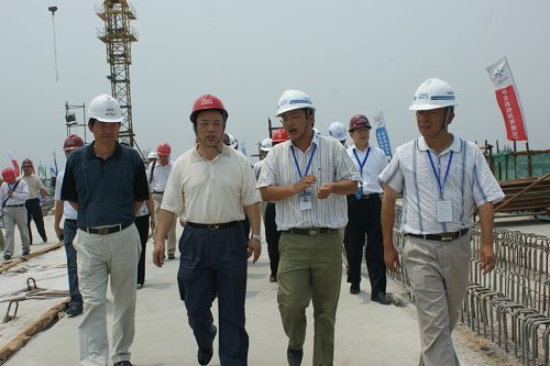 7月10日,原鐵道部副部長,現(xiàn)京滬高鐵股份有限公司董事長蔡慶華在京滬蘇州指揮部指揮長拉有玉的陪同下,蒞臨四航局京滬高鐵項目部視察工作。