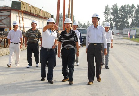 8月26日,廣東省直工委副巡視員鄒發(fā)生在四航局黨委副書記阮祥發(fā)的陪同下,到四航局哈大項(xiàng)目部檢查指導(dǎo)工作。