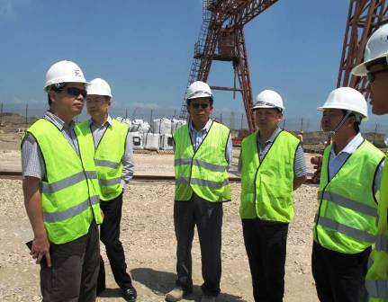 8月27日,四航局總工程師呂衛(wèi)清、中國(guó)港灣總工程師趙玉起在一公司總經(jīng)理江和明的陪同下到埃及塞得東港項(xiàng)目部檢查指導(dǎo)工作,呂總一行查看了攪拌站、地基處理、地連墻等施工現(xiàn)場(chǎng),并聽(tīng)取了項(xiàng)目部領(lǐng)導(dǎo)班子的匯報(bào)。