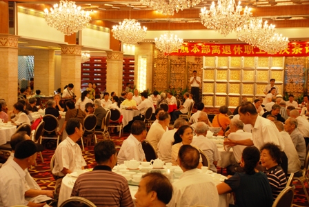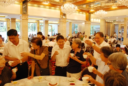 9月22日上午,四航局本部黨委在南園酒家舉行迎國慶賀中秋茶話會,本部離退休職工歡聚一堂,暢談古今。