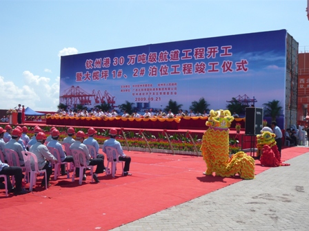欽州保稅港1號(hào)、2號(hào)泊位碼頭舉行竣工儀式