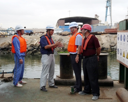 9月29日,前往安哥拉工地慰問指導(dǎo)的三公司黨委書記、副總經(jīng)理陳浩平實(shí)地考察了船舶修理車間、船舶廠修現(xiàn)場(chǎng)后,對(duì)安哥拉船舶部廣大員工的愛國(guó)熱情和目前的各項(xiàng)工作給予充分肯定。他強(qiáng)調(diào),要細(xì)化安全管理工作,進(jìn)一步加強(qiáng)生產(chǎn)安全管理,杜絕安全責(zé)任事故的發(fā)生。