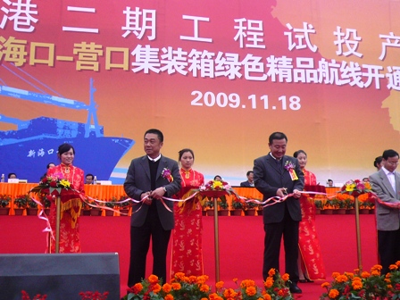 11月18日上午,??诟鄱诠こ淘囃懂a(chǎn)暨中國(guó)海運(yùn)???營(yíng)口精品集裝箱航線開(kāi)通儀式隆重舉行,海南省副省長(zhǎng)李國(guó)梁、??谑形瘯?shū)記陳辭、四航局董事長(zhǎng)梁卓仁等領(lǐng)導(dǎo)出席了該儀式。