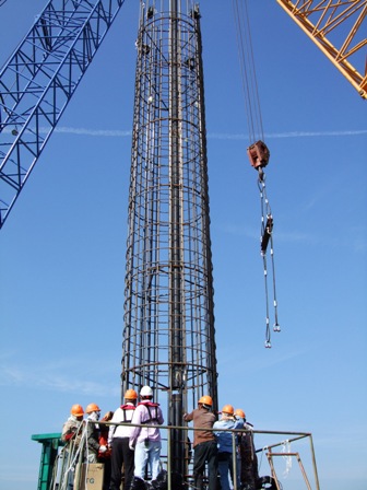 此次澆筑的試驗(yàn)樁樁徑2米,樁長126.5米,樁底入微風(fēng)化花崗巖4米,樁基施工技術(shù)難度在中國及馬來西亞均處于前列。該部自1月初開始試樁以來,堅(jiān)持精心策劃,優(yōu)化施工方案,合理調(diào)配各種設(shè)備,成功克服了晚間作業(yè)風(fēng)浪大導(dǎo)致鋼筋籠對接困難、樁基成孔深度大、鉆進(jìn)及清空過程塌孔可能性大等困難,優(yōu)質(zhì)、高效地完成試驗(yàn)樁工作。
