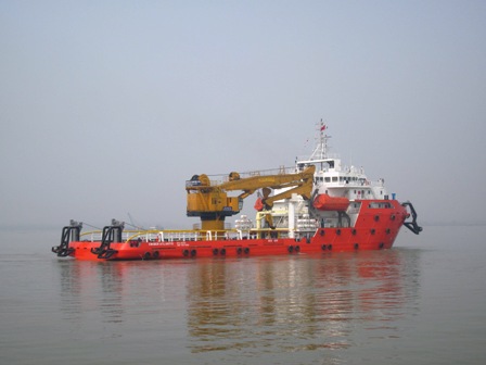 該船總長(zhǎng)78米,型寬20米,型深6.5米,設(shè)計(jì)吃水4.8米, 雙機(jī)雙槳舵機(jī),艏部配置兩個(gè)電力驅(qū)動(dòng)側(cè)推;設(shè)計(jì)航速12節(jié),設(shè)置五層上建,可供150人工作和居?。痪哂蠨P-2動(dòng)力定位和四點(diǎn)定位功能,右舷配置100噸克令吊機(jī)。該船為海洋工程服務(wù)的工程船舶,可在無(wú)限航區(qū)航行,入級(jí)美國(guó)船級(jí)社(ABS)。