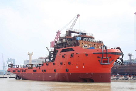 4月30日,一艘78米海洋平臺(tái)維護(hù)船在新會(huì)生產(chǎn)基地順利下水,這是航通公司為馬來西亞船東建造的第三艘78米多用途船。