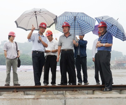 5月28日,四航局董事長、黨委書記梁卓仁在西南分公司總經(jīng)理劉光兵、三公司總經(jīng)理何勇的陪同下,到重慶茄子溪碼頭項目部指導(dǎo)工作。