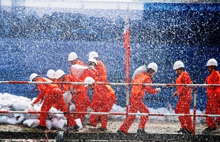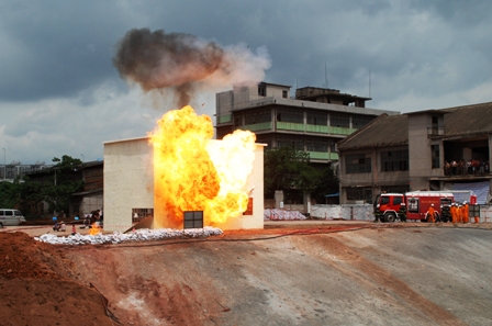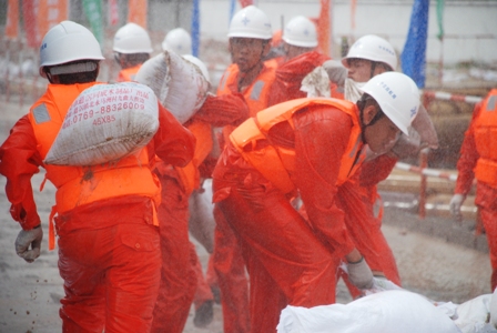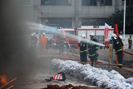本次演習(xí)是中交股份廣泛深入開(kāi)展"安全生產(chǎn)月"的一項(xiàng)重要活動(dòng),演習(xí)結(jié)合華南地區(qū)臺(tái)風(fēng)多發(fā)的實(shí)際,針對(duì)目前社會(huì)關(guān)注的坍塌問(wèn)題,共模擬防臺(tái)、圍堰防洪、塔吊加固、基坑坍塌、天然氣爆炸失火及人員疏散等六個(gè)場(chǎng)景。