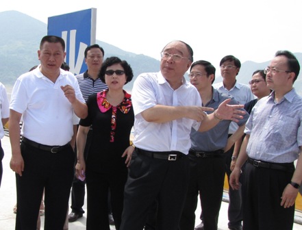 7月23日,重慶市市長黃奇帆、副市長童小平一行到重慶果園港視察,現(xiàn)場察看了四航局承建的一期陸域堆場及輔助設施工程。