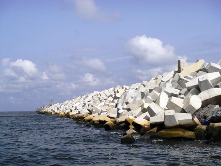 目前,項(xiàng)目部正組織在西堤施工中開展勞動(dòng)競(jìng)賽活動(dòng),現(xiàn)已完成西堤航道側(cè)ch175~ch370段扭王塊安裝1128件,方塊預(yù)制370塊,拋石127800立方米,各項(xiàng)工作有條不紊推進(jìn)。