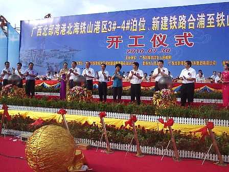 7月30日,廣西北海鐵山港區(qū)3-4號(hào)泊位碼頭工程正式開工,廣西壯族自治區(qū)主席馬飚出席開工儀式并宣布該工程開工。