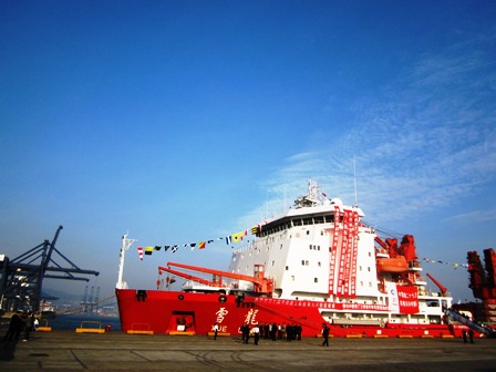 南極科學(xué)考察船"雪龍"號(hào)??葵}田西港碼頭