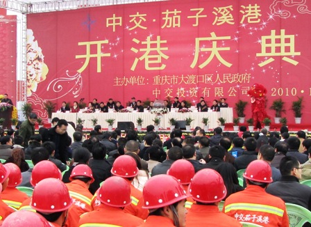 12月18日,四航局參建的重慶茄子溪港舉行開港儀式。重慶市人大常委會副主任鄭洪、政協(xié)副主席陳萬志,中交投資公司總經(jīng)理李茂慧、中交投資公司副總經(jīng)理劉成云、四航局副總經(jīng)理周達培、四航局三公司主要領導等出席了開港儀式。
