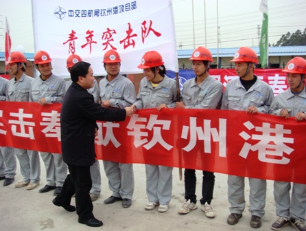 欽州港項目部青年突擊隊自成立以來,努力克服各種困難,不畏辛勞,勇于爭先,在欽州港大欖坪3-8號泊位工程、欽州港大欖坪12-13號泊位工程、廣西天盛二期、三期碼頭及欽州港30萬噸石油碼頭工程等五大項目工程的施工任務(wù)中表現(xiàn)突出,有效地發(fā)揮了“生力軍”和“突擊隊”作用,為項目部完成年度5.9億元的產(chǎn)值指標(biāo)做出了積極貢獻(xiàn)。