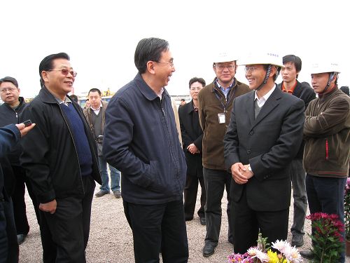 2月1日,廣東省委常委、常務(wù)副省長朱小丹在佛山市領(lǐng)導(dǎo)和四航局總經(jīng)理孫國強(qiáng)等陪同下,到四航局貴廣工地視察慰問。