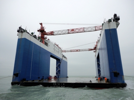近日,四航局自行投資建造的"四航廣州"號8000噸半潛駁在欽州港工程作業(yè)海域試潛成功,不日即可投入施工生產(chǎn)。