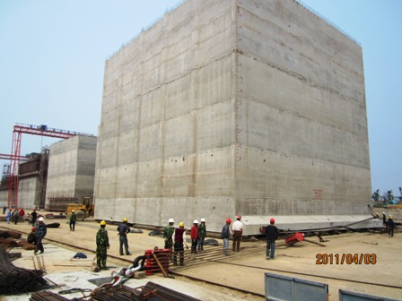 招銀港區(qū)10號(hào)泊位工程首件沉箱順利橫移