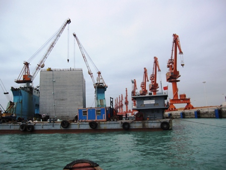 北海鐵山港項目首件沉箱出運安裝完成