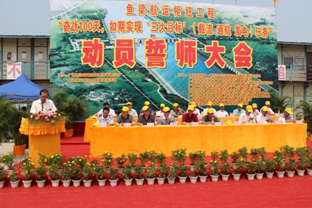 7月20日,三公司北海項(xiàng)目部魚(yú)梁航運(yùn)樞紐項(xiàng)目參加業(yè)主組織的“奮戰(zhàn)100天,如期實(shí)現(xiàn)截流、通航、發(fā)電‘三大目標(biāo)’任務(wù)”動(dòng)員誓師大會(huì),再掀項(xiàng)目施工高潮。