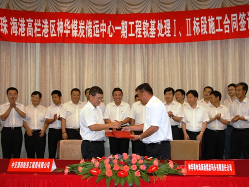 7月23日,四航局與神華粵電珠海港煤炭碼頭有限責(zé)任公司簽訂了珠海港高欄港區(qū)神華煤炭儲運(yùn)中心一期工程軟基處理Ⅰ標(biāo)施工合同。四航局董事長、黨委書記梁卓仁出席簽字儀式并致辭,副總經(jīng)理方丘洚代表施工單位簽訂合同。