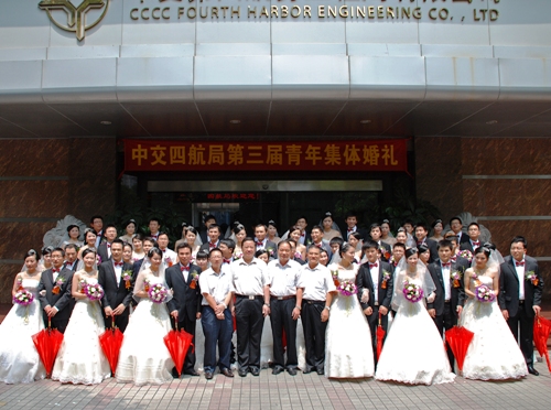 近年來,中交四航局每年招收應(yīng)屆畢業(yè)生300多人,現(xiàn)有員工近6000人,其中35歲以下青年3252人,年輕人已成為了企業(yè)的中堅力量。四航局黨委堅持以人為本,推進(jìn)和諧四航建設(shè),并積極探索黨建帶團(tuán)建有效途徑,先后榮獲“全國先進(jìn)基層黨組織”和“中央企業(yè)黨建帶團(tuán)建工作先進(jìn)單位”。因為建筑工程企業(yè)工作特點,來到中交四航局的年輕人剛剛從學(xué)校畢業(yè)便走到了施工一線,他們每天面對的是圖紙、機(jī)械、挑燈夜戰(zhàn),正因為有了他們,企業(yè)煥發(fā)著生機(jī)和活力。為增強(qiáng)青年員工的凝聚力,體現(xiàn)和諧四航理念,四航局結(jié)合施工企業(yè)工作特點,從2007年開始,局團(tuán)委每兩年策劃組織一屆以“和諧四航,真愛永恒”為主題的青年集體婚禮活動,至今年為止,共舉辦了三屆。集體婚禮的成功舉辦,體現(xiàn)了四航局對青年員工的關(guān)愛之情,增強(qiáng)了青年員工對企業(yè)的歸屬感和忠誠度。