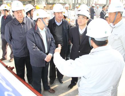 在桂山牛頭島沉管預制廠施工現(xiàn)場,翁孟勇聽取了項目部關(guān)于沉管預制廠的工程進度、沉管預制關(guān)鍵工藝特點和沉管預制準備工作等情況的簡要匯報,并深入深塢施工現(xiàn)場查看了已經(jīng)完成混凝土澆筑的近30米高的塢門大沉箱。在沉管管節(jié)預制生產(chǎn)區(qū),翁孟勇聽取關(guān)于模板鋼筋綁扎、管節(jié)頂推、混凝土澆筑等施工方案的介紹。翁孟勇還深入港珠澳大橋施工總營地,察看了營地辦公和生活環(huán)境。