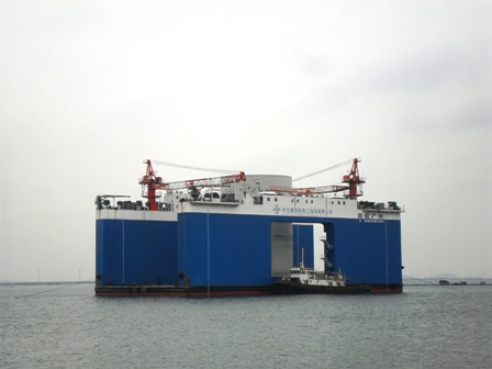 3月4 日,載著廣西欽州港30萬噸級(jí)油碼頭工程最后一個(gè)圓筒的“廣州號(hào)”浮船塢,緩緩駛?cè)霘J州港碼頭施工現(xiàn)場(chǎng),標(biāo)志著廣西欽州港30萬噸級(jí)油碼頭工程18個(gè)大圓筒全部順利搬運(yùn)完成,為后續(xù)工程的順利推進(jìn)奠定了堅(jiān)實(shí)的基礎(chǔ)。
