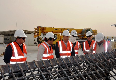 呂衛(wèi)清一行聽(tīng)取了多哈新港項(xiàng)目工程簡(jiǎn)介及施工進(jìn)展、技術(shù)管理、QC/QA及HSE等各項(xiàng)工作的情況匯報(bào),參觀了項(xiàng)目施工現(xiàn)場(chǎng),深入了解各分項(xiàng)工程施工工藝中的重點(diǎn)、難點(diǎn)問(wèn)題,對(duì)工程計(jì)算和實(shí)驗(yàn)工作給予指導(dǎo),并與技術(shù)人員進(jìn)行了充分的研究討論,給予重要的指導(dǎo)性意見(jiàn)。