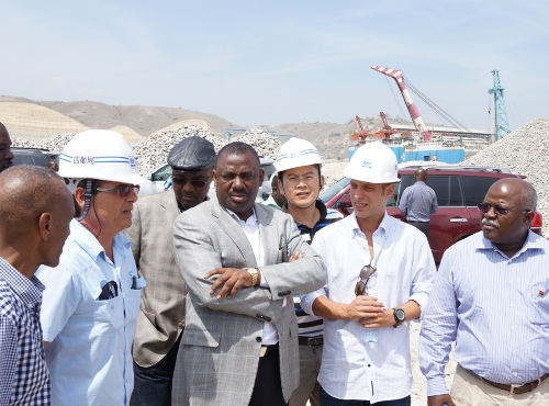 5月4日,安哥拉交通部部長多馬斯一行視察洛比托道堆項目,對項目的建設情況表示滿意。