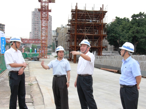 5月22日,廣東省直機關(guān)工委副巡視員鐘國輝一行,在四航局董事長、黨委書記梁卓仁的陪同下,到洲頭咀項目部調(diào)研指導工作。