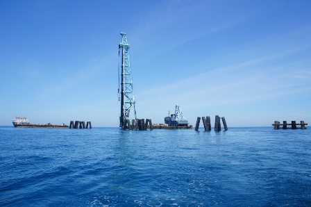 7月11日,洋浦港油品碼頭及配套儲(chǔ)運(yùn)設(shè)施工程水工工程30萬(wàn)泊位碼頭鋼管樁沉樁施工全部完成。
