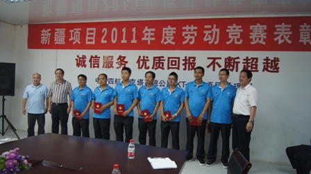 又訊 7月20日,新疆項(xiàng)目部召開2011年度勞動(dòng)競賽表彰大會(huì)。廣東省總工會(huì)黨組成員、紀(jì)檢組長廖汝捷,廣東省海員工會(huì)主席康盛忠、副主席周士超,廣州海員俱樂部主任鄒偉光,四航局黨委副書記張猛,四航局高級(jí)顧問肖干生,四航局一公司黨委書記陳國良等領(lǐng)導(dǎo)出席會(huì)議,并分別為先進(jìn)集體、先進(jìn)個(gè)人頒發(fā)榮譽(yù)證書。