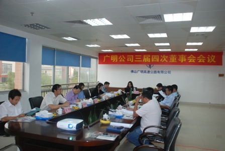 廣明公司三屆四次董事會于10月24日在高明召開,廣明公司董事長蔣昌貴、副董事長吳方紅以及董事會成員盧學平、張尊宣出席了會議,董事陳方偉委托盧學平出席會議并授權(quán)其行使表決權(quán)。會議由廣明公司董事長蔣昌貴主持。