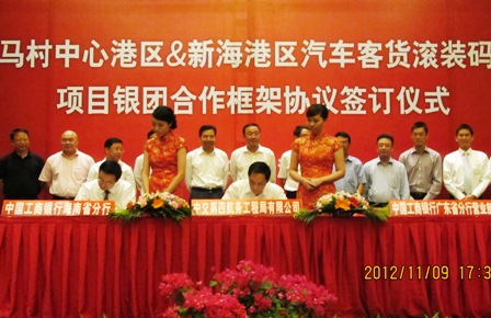 11月9日下午,四航局與工商銀行海南省分行及工商銀行廣東省分行營業(yè)部的“??诟垴R村中心港區(qū)及新海港區(qū)汽車客貨滾裝碼頭工程”項目銀團合作框架協(xié)議,海南中交四航建設有限公司與工商銀行??谛阌⒅?ldquo;新海港區(qū)2.2億、馬村港4.5億元”項目前期貸款合同簽約儀式在??谑信e行。