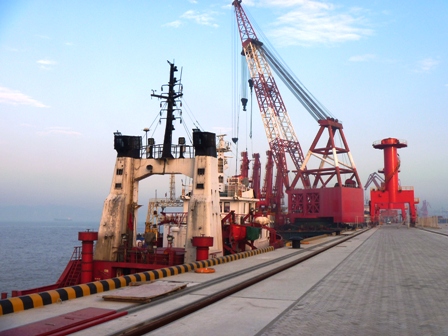 12月14日,五公司承建的招銀港區(qū)8號泊位碼頭投入試運(yùn)行。