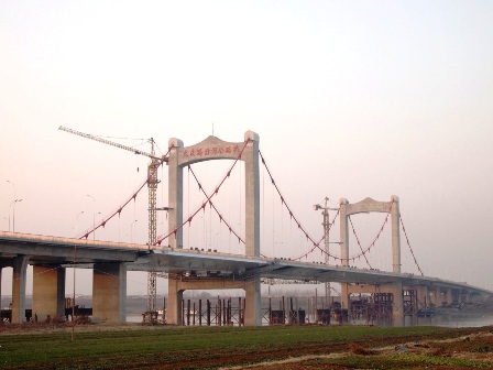 該大橋全長1778米,四航局承建該橋主橋和北岸引橋部分,其中主橋系采用主跨為200米的雙塔雙索面三跨連續(xù)半漂浮體系自錨式懸索橋。該橋的正式通車對于緩解蚌埠市淮河南北兩岸的交通壓力、促進(jìn)兩岸經(jīng)濟(jì)社會的平衡發(fā)展有著極大的促進(jìn)作用,具有重大的經(jīng)濟(jì)價值和社會價值。