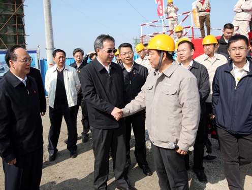 1月15日,中央政治局委員、廣東省委書記胡春華一行在湛江市委書記劉小華、市長(zhǎng)王中丙、常務(wù)副市長(zhǎng)趙志輝、張榮輝等的陪同下,到三公司承建的湛江港寶滿集裝箱碼頭工程、湛江鋼鐵基地項(xiàng)目30萬噸級(jí)散貨碼頭工程等重點(diǎn)建設(shè)項(xiàng)目視察。