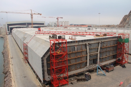 目前,兩管節(jié)正進(jìn)行一次舾裝,封閉兩端后,將在管內(nèi)安裝水箱(相當(dāng)于將管節(jié)變成一個鋼筋混凝土結(jié)構(gòu)的巨型“潛水艇”),待管節(jié)經(jīng)水密性試驗后,在灌水的干塢內(nèi)浮運(yùn)至寄放區(qū)二次舾裝,于日后浮運(yùn)出塢沉放安裝。