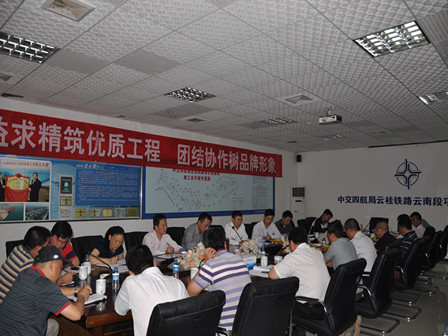 隨后,孫國強一行在云桂鐵路項目部會議室聽取了各分部、各參建子公司總經(jīng)理和項目部就目前施工生產情況、存在困難、施工生產計劃和需要解決的問題等情況的匯報。 孫國強在會上作了重要指示。他指出此行目的:一要落實公司工作會議的要求,重視項目管理基層工作;二要與云桂公司建立良好的溝通機制,為項目建設創(chuàng)造良好的環(huán)境;三是各參建子公司要加強對分部的支持,以此推動云桂鐵路項目更好的建設。他提到目前項目建設存在的問題:一、安全、質量還沒有完全受控;二、不夠重視關鍵線路的施工;三、沒有完全編制完成關鍵線路的技術方案;四、由于計量方面的工作造成現(xiàn)場現(xiàn)金流出現(xiàn)壓力。